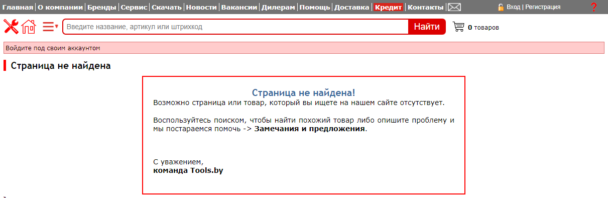 | 404 | Not Found | "Не найден". Сервер не может найти запрашиваемый ресурс. | Возможно такой страницы не существует (проверьте правильность URL) или она ограничена (войдите в свой аккаунт на сайте). Можете обратится в тех. поддержку: sites_support@tools.by |